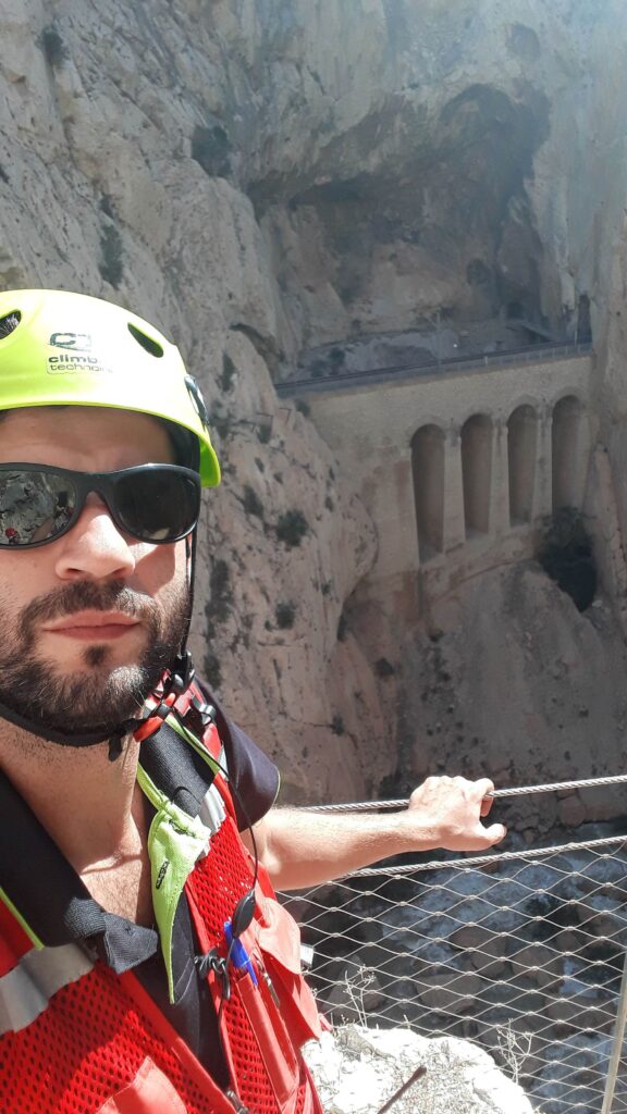 Soy Jorge Pérez, llevo más de diez años trabajando en Caminito del Rey. No solo recorriéndolo, sino observándolo, aprendiéndolo y acompañando a personas muy distintas a vivirlo de la mejor manera posible.